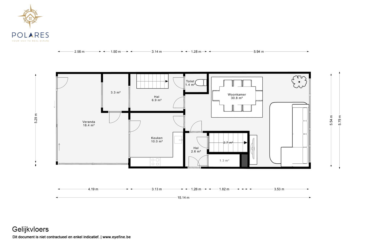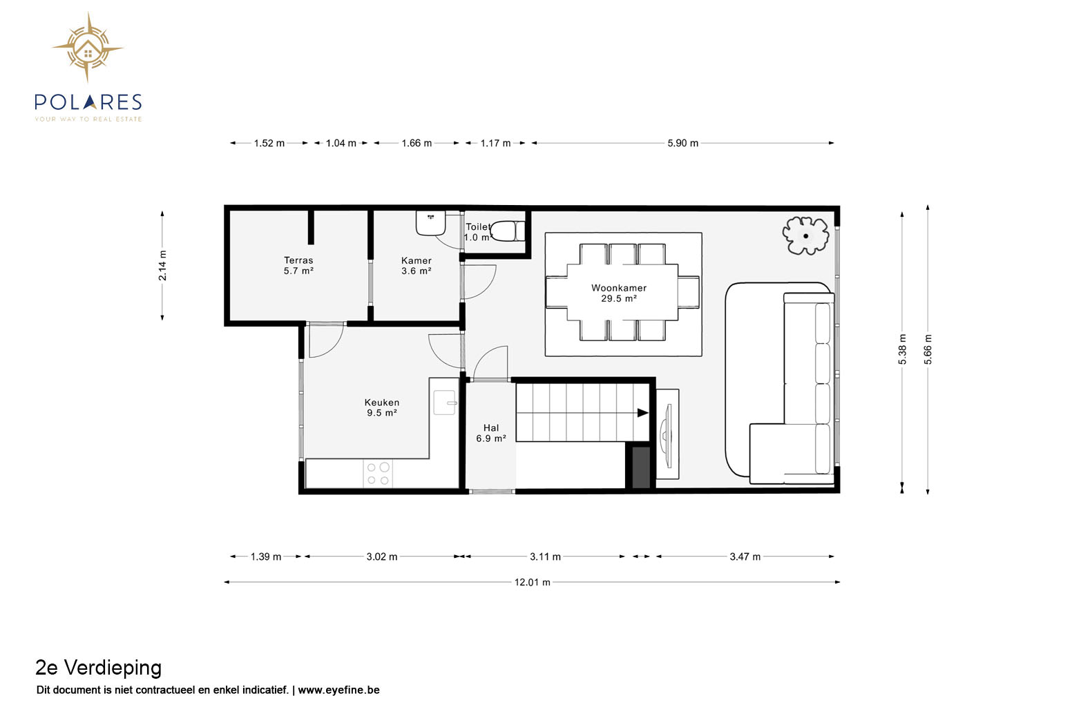 Planifiez votre visite en ligne sur www.polares.eu Au deuxième et troisième étage de cette résidence de petite taille, vous trouverez cet appartement en duplex. En entrant dans l'appartement, vous arrivez dans le salon lumineux avec suffisamment d'espace pour la salle à manger et le coin salon. Depuis le salon, vous avez accès à la cuisine entièrement équipée. Cette dernière donne accès à la terrasse. De plus, il y a une buanderie et des toilettes séparées. Le hall d'escalier vous emmène à l'étage supérieur. Ici, vous trouverez les deux chambres à coucher, ainsi que la salle de douche avec toilettes. Cet appartement est également livré avec un garage, ainsi qu'un espace de stockage au sous-sol. Il n'y a pas de frais communs.